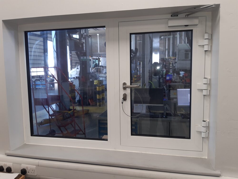 Fire-rated and secure glazed windows for safety and visibility.
